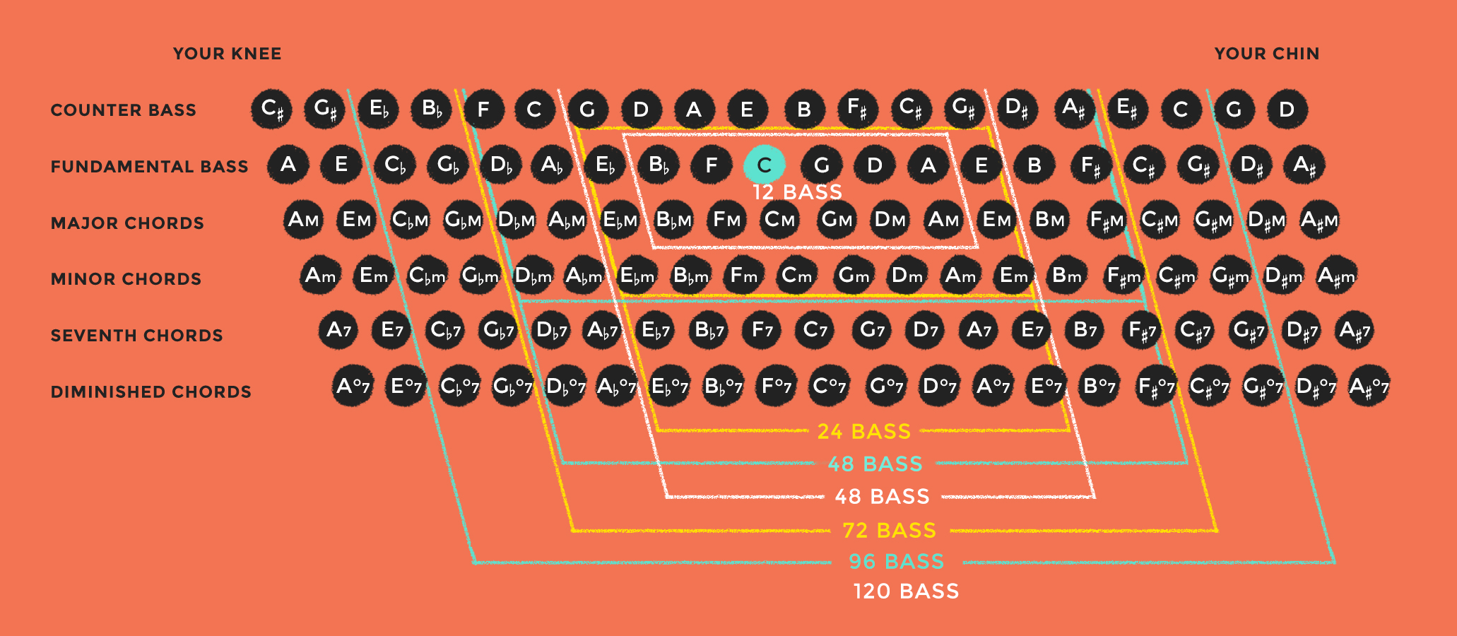 And here's a bass button reference for your possibly chromatic accordion in the Stradella system be it piano or button. Click the image to download!